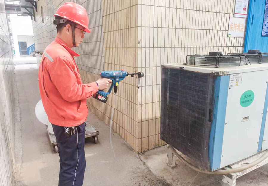 魯西集團(tuán)的員工對付這種“白色”隱患,也是各顯神通。煤化一事業(yè)部的現(xiàn)場操作工巡檢時隨身攜帶手持式便攜沖洗工具,隨時對現(xiàn)場地面及一些設(shè)備上的積絮進(jìn)行沖洗;雙氧水事業(yè)部除了在現(xiàn)場噴灑清水外,還利用沾濕的擦機(jī)布,對粘上柳絮的防護(hù)濾網(wǎng)進(jìn)行滾動式擦拭;酮酸事業(yè)部現(xiàn)場員工在硫磺制酸運(yùn)行空氣風(fēng)機(jī)門窗上安裝窗紗,有效避免楊柳絮的飛入。